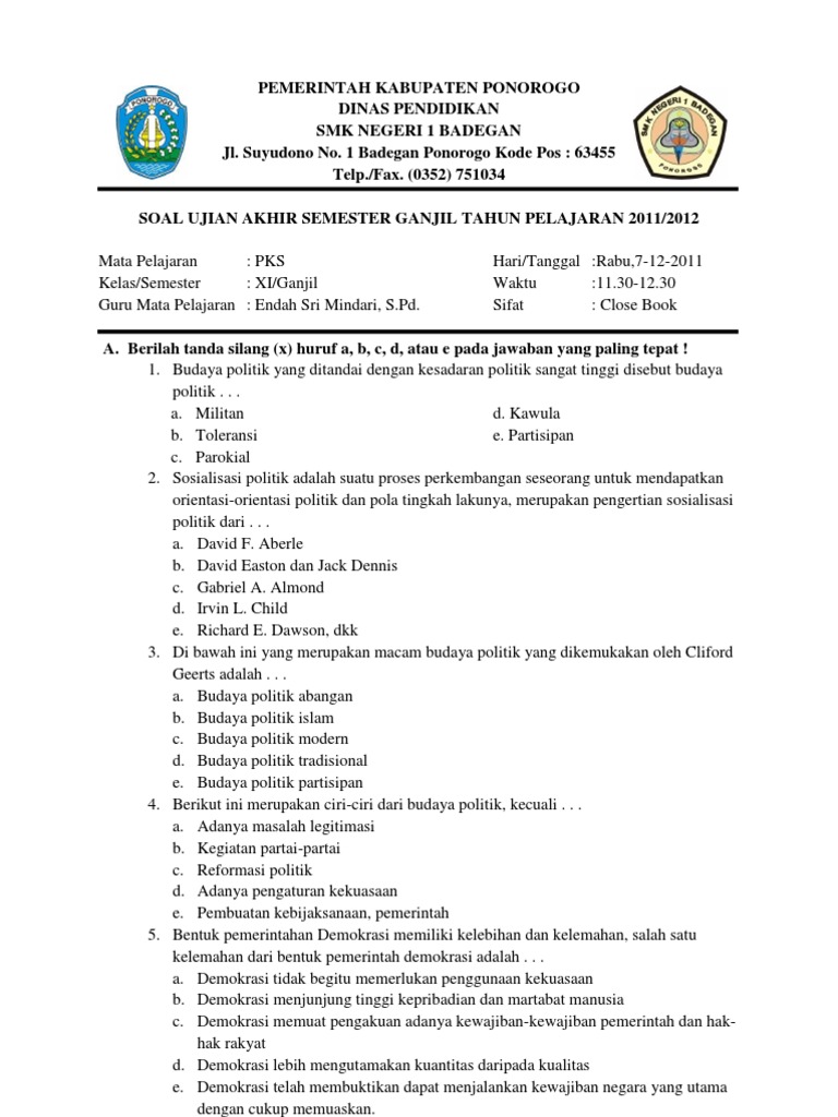 Soal bahasa jawa kelas 5 semester 2. Kunci jawaban room ii 1. Kunci jawaban dan pembahasan bahasa indonesia kelas xi semester 2. Saladbowl kunci jawaban lks matematika sma kelas xii penerbit intan pariwara showing 1 1 of 1 from www.goodreads.com. Namun untuk semesntara belum bisa kami aktifkan link ya. Kemendikbud saat ini telah berhasil merancang dan menerbitkan buku bahasa inggris kelas 10 sma smk ma mak kurikulum 2013 revisi 2017 terbaru buku ini diterbitkan dengan konstruksi kurikulum 2013 yang diperbaharui. Mandiri pendidikan pancasila dan kewarganegaraan ppkn untuk smp. Buku ipa kelas vii smpmts ini disusun dengan pemikiran di atas. Berikut ini adalah file tentang soal uas pkn perguruan tinggi serta jawaban yang bisa bapak ibu unduh secara gratis dengan menekan tombol download pada tautan link di. Kisi kisi uas pkn lengkap kelas 12 smk beserta jawaban 2015 2016 smkn 5 malang multimedia. Soal ulangan k13 bahasa jawa kelas 3 semester 2. Soal uas pkn perguruan tinggi serta jawaban. Kunci jawaban kelas 5 semester 1 kunci jawaban kelas 5 subtema 2: