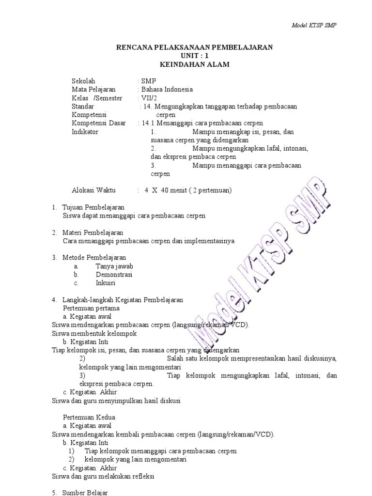 Lengkap rpp 1 lembar bahasa indonesia kelas 7 (vii) semester 1 kurikulum 2013.